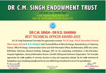 Veterinary Research Institute, Izatnagar, Bareilly, UP he proved himself as an able administrator and distinguished veterinary educationist.