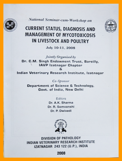 National Seminar-cum-Workshop on Current Status, Diagnosis and Management of Mycotoxicosis in farm animals and poultry | 10-11th July, 2008 | Jointly organized by Trust IAVP Chapter, IVRI, DST,and IVRI,Izatnagar at Division of Pathology, IVRI, Izatnagar, UP. |