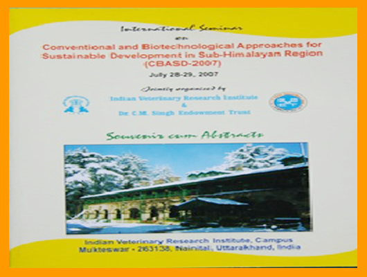 International Seminar on Conventional and biotechnological approaches for sustainable development in Sub-Himalayan Region (CBSAFD-2007) | Jointly organized by Trust and IVRI at IVRI Campus,Mukteswar, Distt. Nainital, Uttarakhand. | |
